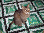 Kermit (Keira's litter sister) on a String Quilt done in St. Patrick's fabrics and claiming it as her own. I'm pretty sure she was meowing to 'When Irish Eyes are Smiling' at the same time...
